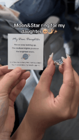 To My Daughter Star & Moon Rotatable Ring for Anxiety Relief & Heartfelt Message Card